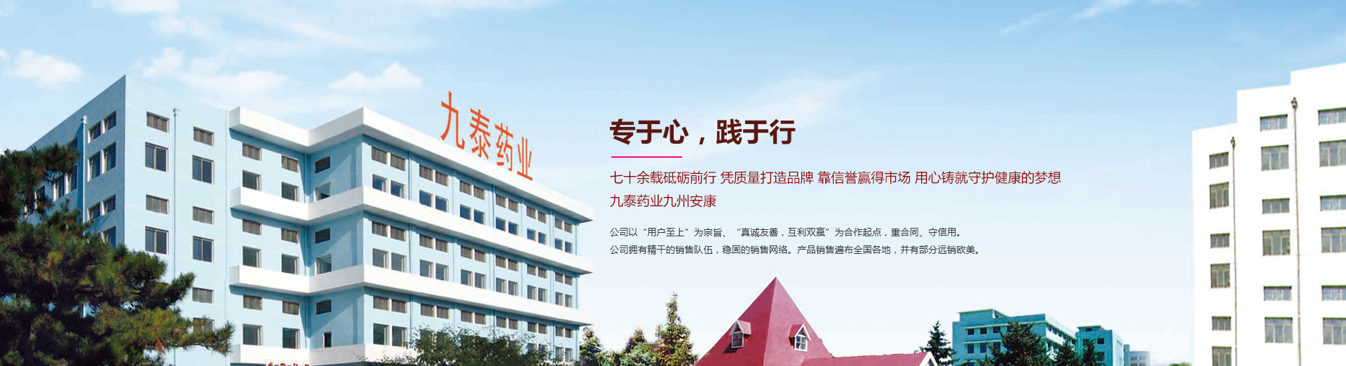 錦州九泰藥業有限責任公司是具有六十多年生產歷史的綜合性制藥企業。前身錦州制藥一廠始建于1951年,1998年改制為錦州九泰藥業有限責任公司。近年來各項經濟指標一直位于全國醫藥生產企業百強之列,是遼寧省重點制藥企業之一。曾先后榮獲:省級先進企業、省級文明單位、省級科技先導型企業省級用戶滿意企業等榮譽稱號...
